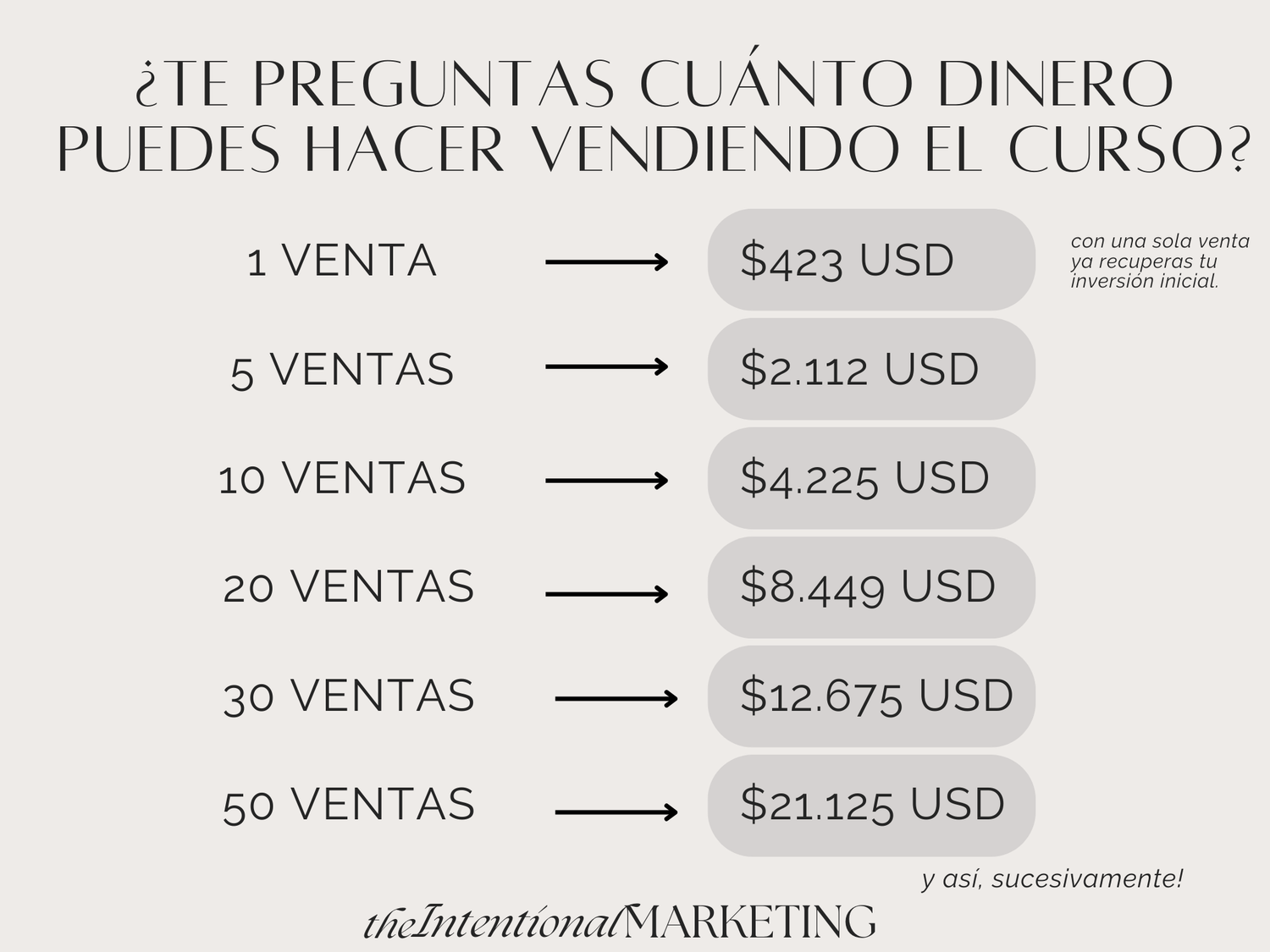 No necesariamente tienes que vender el curso, el curso también te equipará y te guiará para vender cualquier producto digital que desees.